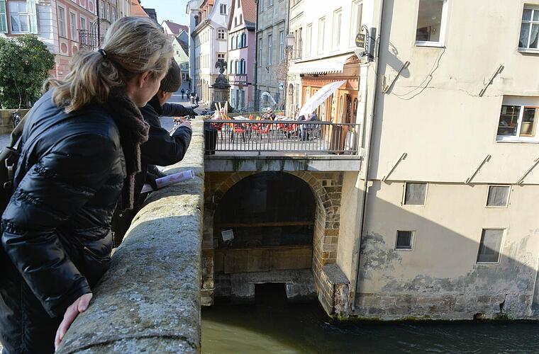 "Kerstin Werner und Detlev Hohmuth blicken auf das Tor unterhalb der Unteren Brücke..."