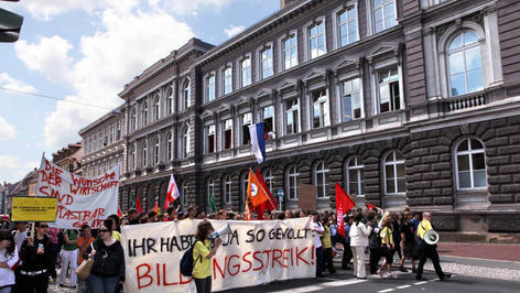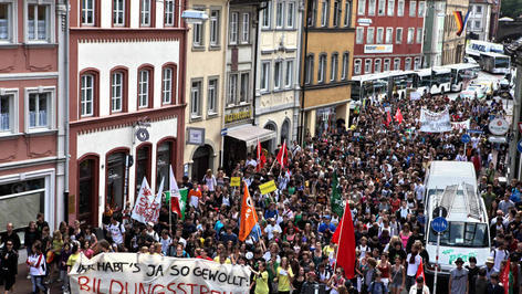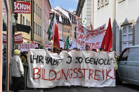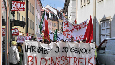 Obwohl das Kultusministerium für streikende Schüler Ordnungsstrafen angedroht hatte, nahmen dennoch viele Schüler am Bildungsstreik teil. Rund zwei Stunden zogen sie zusammen mit Studenten quer durch die Innenstadt und zeigten ihren Unmut über das in ihren Augen marode Bildungssystem.