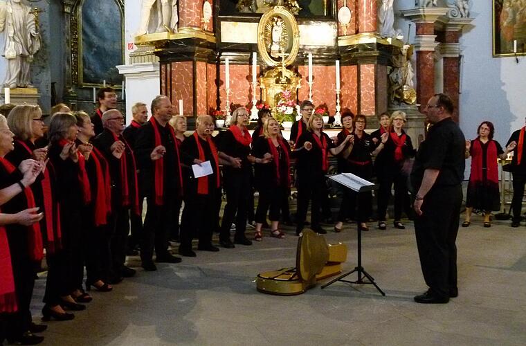 Dort am Eingang Jesuitenstraße standen vor Beginn des ersten Abendkonzertes die Chormitglieder von "Good News" in der Liedertafel Bad Staffelstein Spalier: "Die Frohe Botschaft hat Sie hierher geführt!" wurden die Besucher freundlich begrüßt. Was dann folgte, verdient das Prädikat "grandios": Leiter Wolfram Brüggemann dirigierte seinen Gospelchor zur Höchstleistung. Eine dreiviertel Stunde lang zündeten die förmlich entflammten Sänger ein Feuerwerk in das Kirchengewölbe. Und zwar ohne Noten- und Textblätter in den Händen. Alle Gospels ertönten in Englisch oder in afrikanischen Sprachen auswendig.