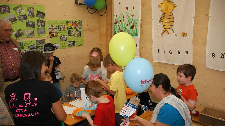 Die Kinder konnten mit dem Kindergarten "Purzelbaum" Giech und beim Amt für Ernährung, Landwirtschaft und Forsten zusammen mit der Waldbauernvereinigung malen und basteln. Das Amt wies an Schautafeln und Vitrinen auf die dieses Jahr wieder verstärkte Gefahr durch die Borkenkäfer hin. Die Jugendbeauftragten von Scheßlitz ließen eine Tonne Sand ankarren, damit die Kleinen mit Spielzeugbaggern und einem echten Kleinbagger hantieren konnten. Beim Tanzen der TSV-Garden und der Zumb Kids sahen viele zu und klatschen begeistert Applaus.