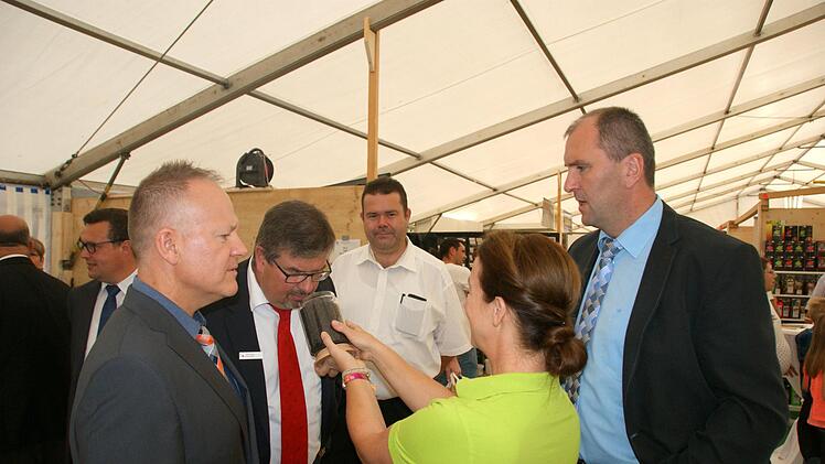 Im großen Zelt präsentierten sich alle Beteiligten an ihren Ständen optimal und zeigten die Vielfalt der Scheßlitzer Unternehmer. Sie freuten sich über die zahlreichen Besucher, die bei schönem Wetter an ihre Stände kamen und sich informieren und beraten ließen. Die Bandbreite der Angebote reichten von Banken, Serviceleistungen für die Gesundheit, von Haus, Schönheit bis zum gastronomischen Teil. Neu war heuer die Teilnahme der Hofkäserei Kleinstahl aus Südtirol mit ihren Spezialitäten aus Ziegenmilch. Dremel begründete dies so: "Die Südtiroler Familie Großgasteiger wohnt an einem Urlaubsort, den schon viele Scheßlitzer besucht haben und der deshalb fast schon zur Stadt gehört."