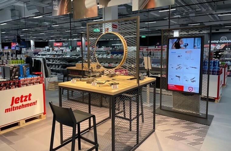 Sichtlich stolz ist MediaMarkt auf die fünf sogenannten "Experience Zonen", bei denen regelmäßig wechselnde Technik-Trends ausprobiert werden können. In der Beauty-Zone gehe es beispielsweise um Haar- und Bartstyling oder Mundhygiene. "Gaming-Plätze mit Screens, Controller und Co." warteten in der Gaming-Zone, verschiedene "Haushaltshelfer" dagegen in der Zone für Küchenkleingeräte. In der Heimkino-Zone gebe es 98-Zoll Fernseher und die Soundbar zu testen. Auch ein Barista-Bereich lasse sich im Markt finden.