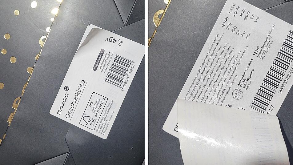 Ein Einkauf bei Rossmann sorgt für Verärgerung: Ein Kunde entdeckte unter dem Preisetikett einer Geschenktüte ein zweites Etikett - mit einem deutlich niedrigeren Preis von einem anderen Händler. Ein inFranken.de-Leser hatte in der Rossmann-Filiale in Breitengüßbach eine Geschenktüte für 2,49 Euro gekauft.