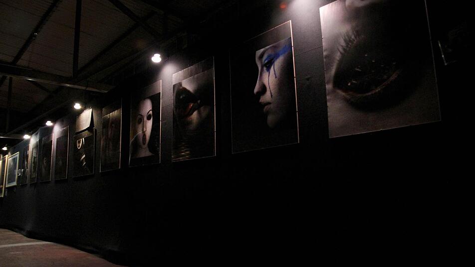 Ein Gesicht inmitten von Finsternis. Schwarze Farbe rinnt aus dem Mund, den großen grünen Augen, die einen bannen. Sie spiegeln die dunkle Seite einer Welt, in deren Hamsterrad wir uns abstrampeln, funktionieren, weiter und weiter perfektionieren. Halt! Stopp! Bis hierhin und nicht weiter! Für einen Moment lang soll die Maschinerie ruhen, in der sich alles um Macht, Einfluss und Besitz dreht. Aufrütteln möchte Elena Helfrecht mit den "Nightmares", die sie ab 6. Januar im Bamberger Sound 'n' Arts inszeniert: Menschen aus dem Albtraum eines Automatismus reißen, den keiner mehr hinterfragt, weil er längst selbstverständlich wurde.