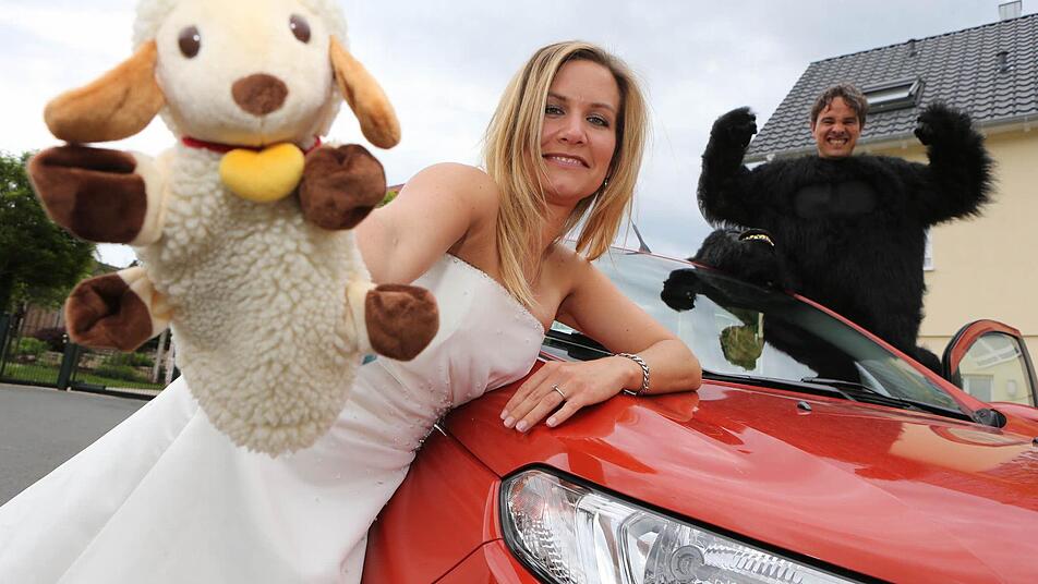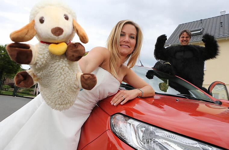 Warum macht sie so was? Weil sie einen Wettbewerb gewinnen will. Genauer gesagt: Weil sie und ihr Mann zwei Autos ergattern möchten. Die verlost der Hersteller allerdings nicht einfach so: "Sechs Wochen lang kommt jede Woche eine Aufgabe, die wir möglichst kreativ erfüllen sollen", erklärt Schafkostüm-Trägerin Maren Lang (33).