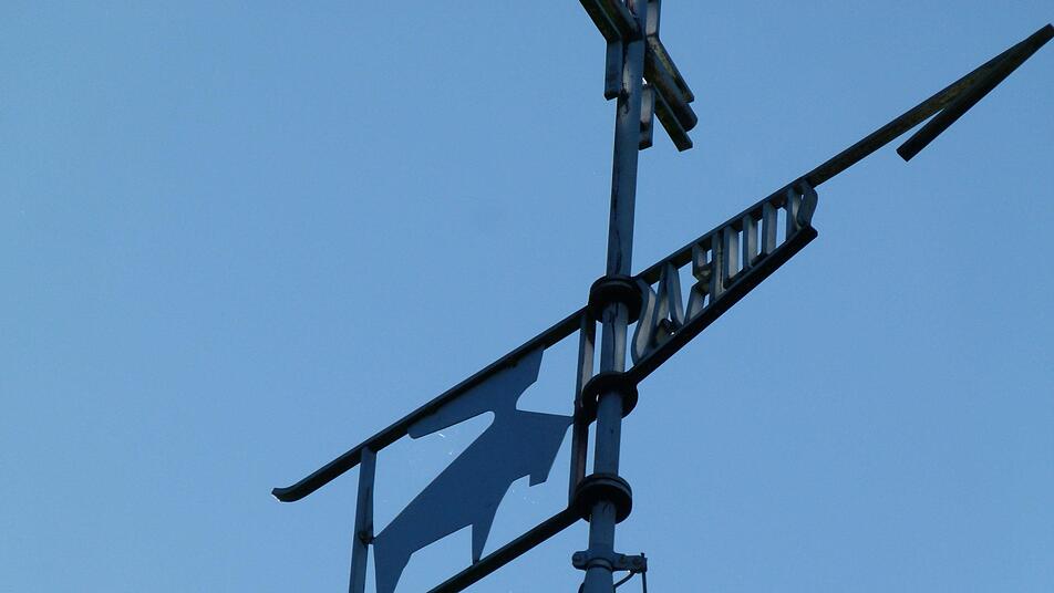 Dieser Stier auf dem Turm ist der einzige Beleg dafür, dass Lukas Namenspatron dieser Ebracher Kirche ist. Im fünfeckigen Innenraum gibt es keine figürliche Darstellung dieses Heiligen. Lediglich sein eingemeißelter Name taucht mit den Namen der drei anderen Evangelisten an der Orgelempore auf. Aber das passt. Denn seit nunmehr 50 Jahren hören die etwa 500 evangelischen Christen Ebrachs die Frohe Botschaft in der St. Lukas-Kirche: Am 14. September 1969 wurde sie vom damaligen Bamberger Dekan Günter Schlichting eingeweiht und seit dem ununterbrochen für Gottesdienste, Taufen, Konfirmationen, Hochzeiten genutzt.