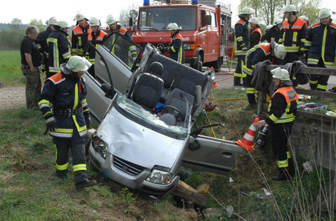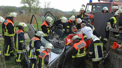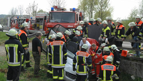Die Fahrerin, die sich alleine im Auto befand, wurde eingeklemmt und musste von den Feuerwehren aus Obergreuth, Sassanfahrt, Frensdorf und Röbersdorf mit der Rettungsschere befreit werden. Den Schaden beziffert die Polizei auf rund 8000 Euro.