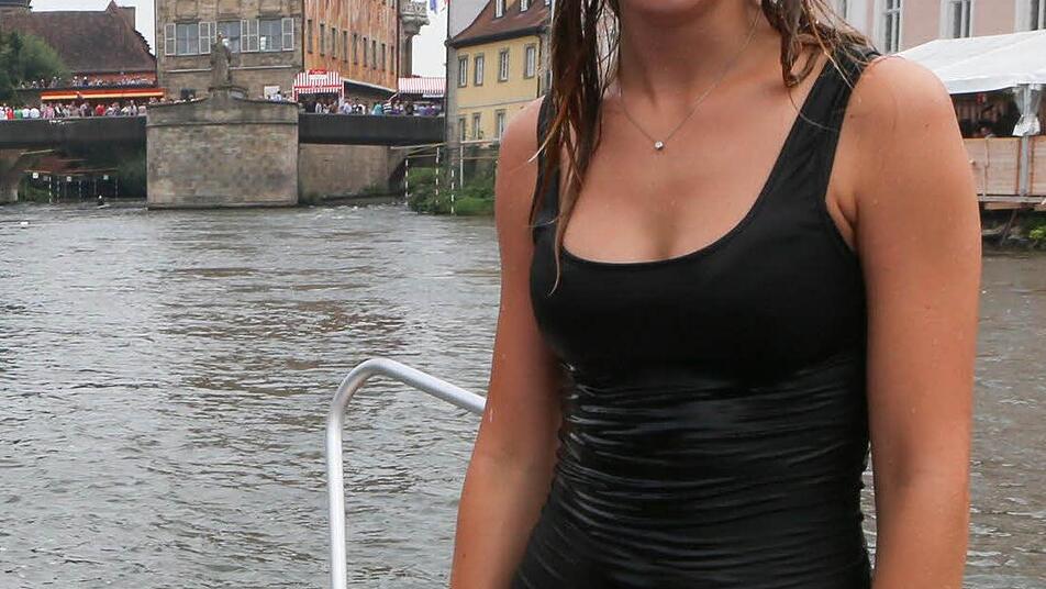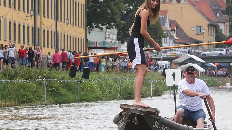 Ursprünglich dachte Elena Wicht, man wolle sie veralbern. Aber dem ist nicht der Fall. Sie wird also am Sonntag als erstes Sandmadla der Sandkerwa unter die Fischerstecherinnen gehen und einen Kampf ausfechten. Dafür stand sie am Samstag schon mal nach dem Jugendfischerstecher zur Probe auf dem Schelch und hielt sich sehr ordentlich. Ob sie am Sonntag baden gehen wird? Während des Trainings jedenfalls fiel sie nicht ins Wasser. Sie sprang freiwillig.