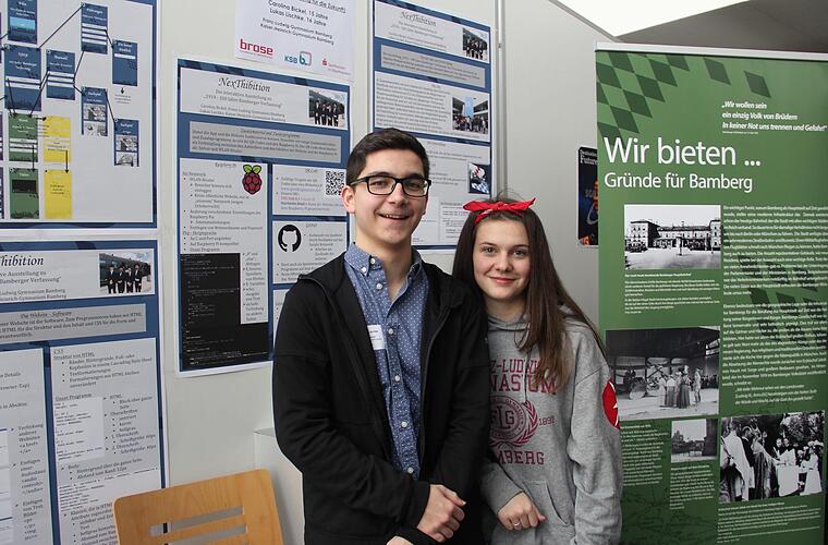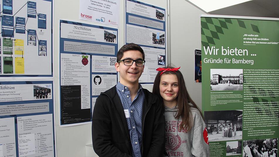 Unter insgesamt 52 Projekten von 81 Schülern hat sich ein Duo aus Bamberg den Regionalsieg im Fachbereich Informatik/Mathematik bei "Jugend forscht" in Oberfranken geholt. Carolina Bickel (15 Jahre) vom Franz-Ludwig-Gymnasium (FLG) und Lukas Lischke (16 Jahre) vom Kaiser-Heinrich-Gymnasium (KHG) überzeugten die Jury in der Hochschule Hof mit "NexThibition (Ausstellung für die Zukunft)".