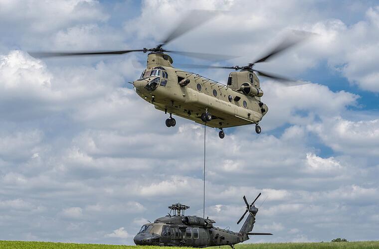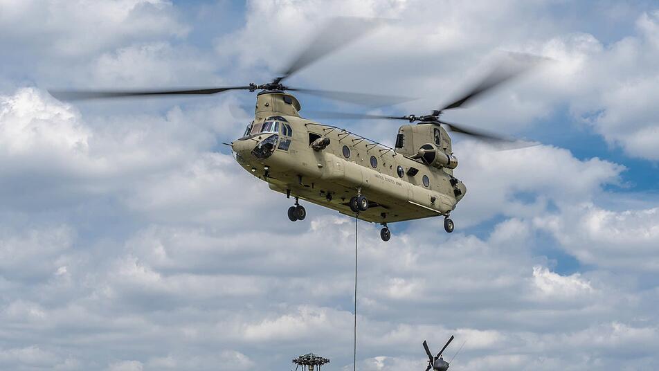 Neun Black-Hawk-Helikopter sowie doppelrotorige Chinook-Transporthubschrauber sind über