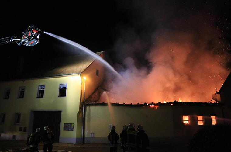 Mehr als zehn Feuerwehren aus den umliegenden Ortschaften im Landkreis waren mit rund 200 Einsatzkräften vor Ort. Ihnen gelang es, ein Übergreifen auf angrenzende Wohnhäuser in dem eng bebauten Ortskern zu verhindern. Die unmittelbaren Anwohner konnten rechtzeitig ihre Häuser verlassen. Von einem in dem ausgebrannten Gebäude eingemauerten Gastank ging laut Feuerwehr keine Gefahr aus.