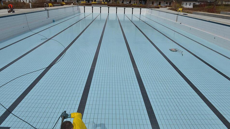 Diverse Vorarbeiten laufen im Stadionbad auf Hochtouren. "Man entfernte Eisdruckpolster, die die Becken vor Frostschäden bewahren, ließ überschüssiges Wasser ab. Das Sportbecken säubern Mitarbeiter der Stadtwerke gerade mit Hochdruck- und Tellerreinigern bis in die letzte Fuge und Ecke", so Astrid Rosenberger. Defekte Fliesen würden ausgetauscht. Drei Wochen vor der Eröffnung fließt Wasser in sämtliche Becken, drei bis vier Tage lang, wie die Pressesprecherin berichtete. Die technische Anlage geht in Betrieb, zunächst im einwöchigen Probelauf, um alle eventuellen Schäden nach dem langen Winterschlaf aufzuspüren. "Regentage nutzt die Mannschaft für Arbeiten im Gebäude - beispielsweise in den Kabinen oder Duschen - wobei die gründliche Reinigung fast die komplette Zeit in Anspruch nimmt." Zwei Wochen später als geplant ist man heuer dran - frostbedingt: "Die Ringwasserleitung konnte nicht geöffnet werden, nachdem die Gefahr bestand, dass sie über Nacht einfriert."