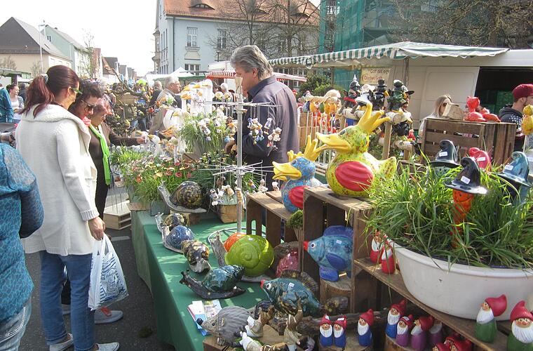 100 Händler werden erwartet. Die Shopping-Lust wird von den vielen Angeboten gestillt: Von Strumpfwaren, Gewürzen, Tee, Lederwaren, Uhren, Geschenkartikel bis hin zu Textilwaren sowie Blumen, Pflanzen und österliche Dekorationen bietet der Markt alles. Aus der slowenischen Partnergemeinde Ivancna Gorica werden an zwei Verkaufsständen Händler mit Wein, Fleisch- und Wurstwaren auch die slowenischen Landfrauen dort ihre slowenischen Spezialitäten anbieten.