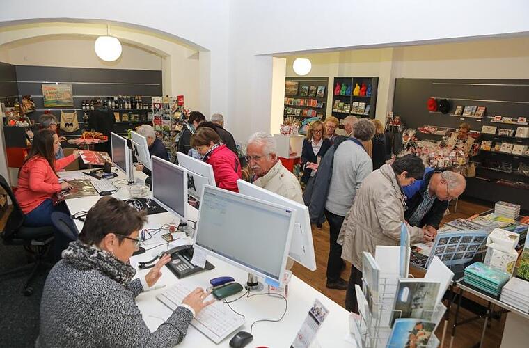 Vom Maxplatz in die Austraße: Der Fränkische Tag bleibt mit einer Geschäftsstelle in der Bamberger Innenstadt präsent. Am Montag war Eröffnung am neuen Standort, zu der es sich treue FT-Leser wie Oberbürgermeister Andreas Starke (SPD) oder die 92-jährige Dorothea Hahn, die seit über 50 Jahren Kundin ist, nicht nehmen ließen, persönlich vorbeizuschauen und das Sortiment an fränkischen Spezialitäten und Büchern zu erkunden. Dort können nun auch wie bisher Tickets gekauft und Anzeigen aufgegeben werden - und natürlich lässt sich dort alles rund ums Abo klären. Die Hintergründe des Umzugs erklärt Geschäftsstellen-Managerin Eva Förtsch im Interview.