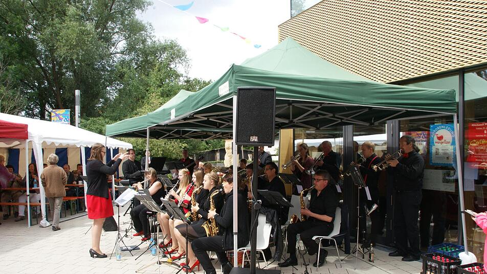 Zu der Feier anlässlich des Zehnjährigen verwandelte sich Litzendorf in eine Kunst- und Kulturmeile. Im Ortskern neben der Bücherei spielten zu Beginn das Streichorchester der Kreismusikschule unter der Leitung von Josef Gentil und die "Triple-Big-Band" der Baunacher Stadtkapelle unter Annika Gleußner.