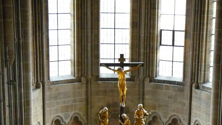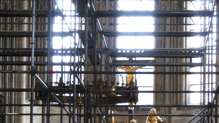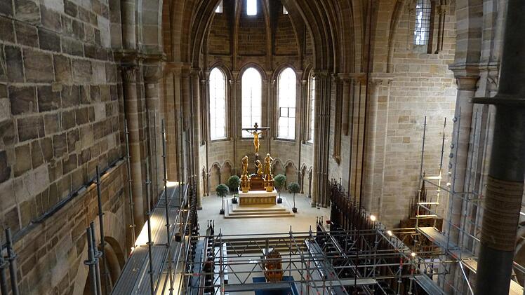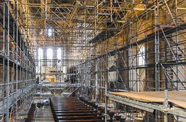 Im Bamberger Dom gehen die routinemäßigen Sanierungsmaßnahmen zügig voran.