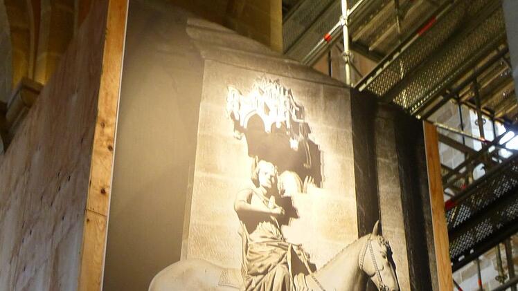 Noch steckt der Bamberger Reiter gut gesichert hinter einer Holzverschalung. Der Bereich um die Orgel und das Kaisergrad ist fast fertig, so dass demnächst die stählernen Gerüste weiterwandern können: Zu Ostern wird die Altarinsel umringt sein. Um den nächsten Bauabschnitt zu beginnen, muss für eine Woche der Besuch draußen bleiben. Von kommendem Montag, 16. März, an bis zum Samstagnachmittag sind nur die Handwerker im Dom zugange.