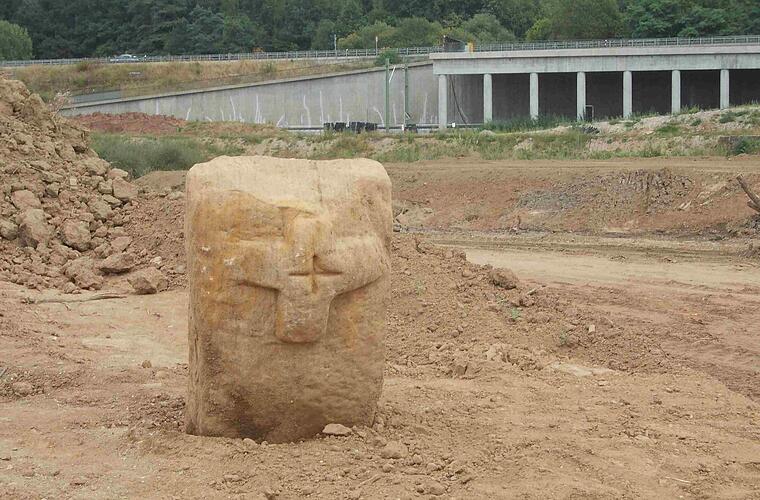 Wie unsere Nachfrage bei Frank Kniestedt, dem Pressesprecher des Verkehrsprojektes Deutsche Einheit Nr. 8 (VDE8) in Erfurt ergab, wurde der rätselhafte Stein am Wochenende aus der Erde geholt und geborgen. In diesen Tagen soll er abgeholt und nach Schloss Seehof in die Obhut der Archäologen des Landesamtes für Denkmalpflege zu weiteren Untersuchung gebracht werden.