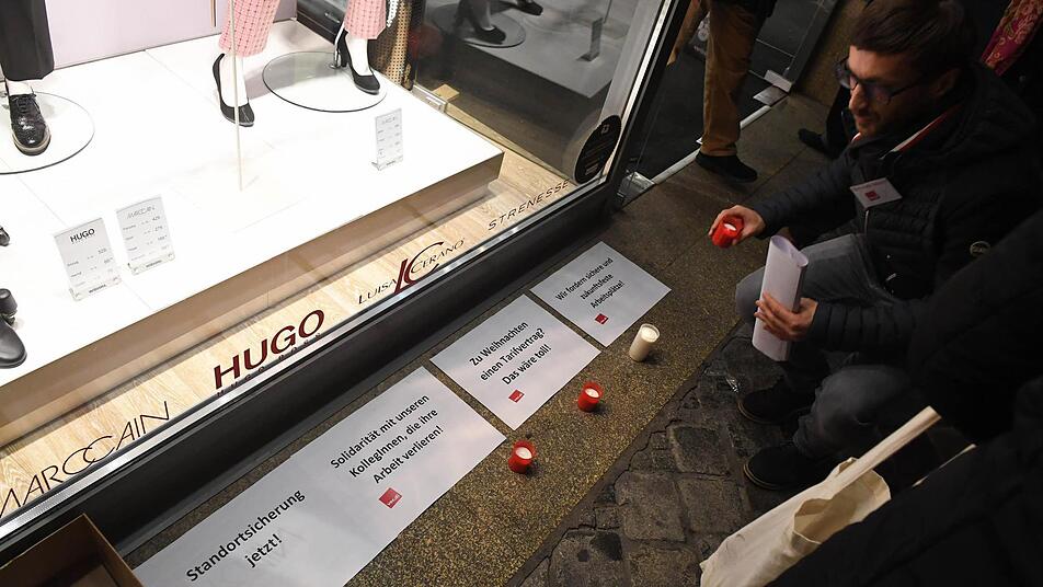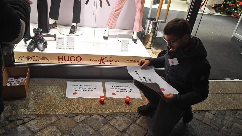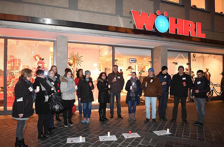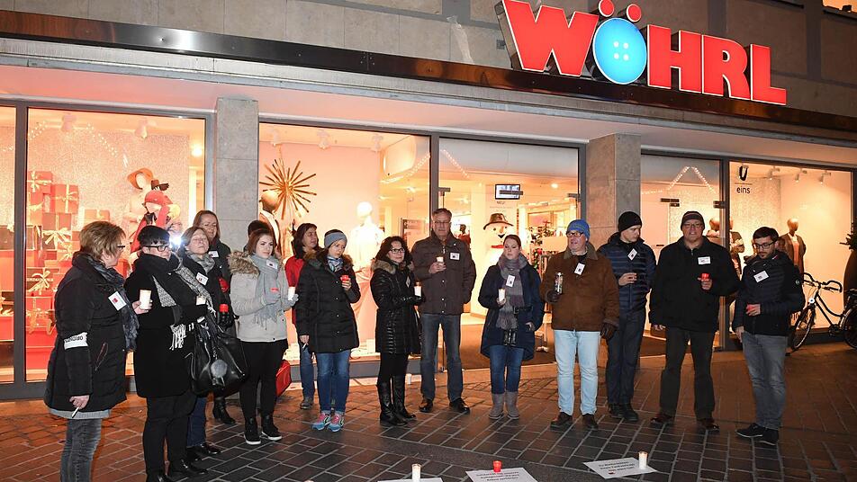 Aus "Solidarität mit unseren Kollegen, die ihre Arbeit verlieren" trafen sich 15 Männer und Frauen am Mittwochabend vor der Wöhrl-Filiale am Max-Platz.