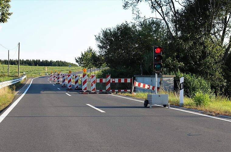 Der Verkehr wird mit einer Baustellen-Ampel geregelt.