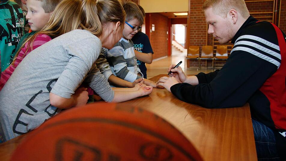 Die Hände wäscht sich Alexander so schnell wohl nicht mehr. Der achtjährige Schüler war am Dienstag dabei, als Basketballspieler Philipp Neumann die Grund- und Mittelschule in Zapfendorf besuchte.