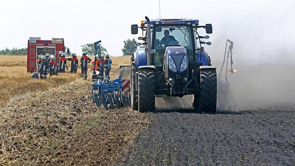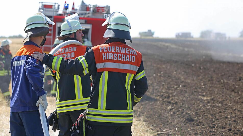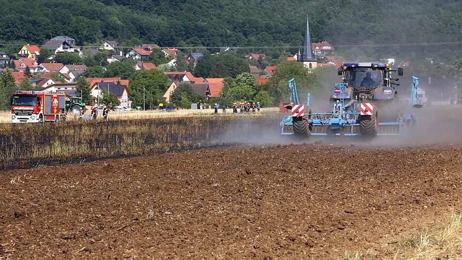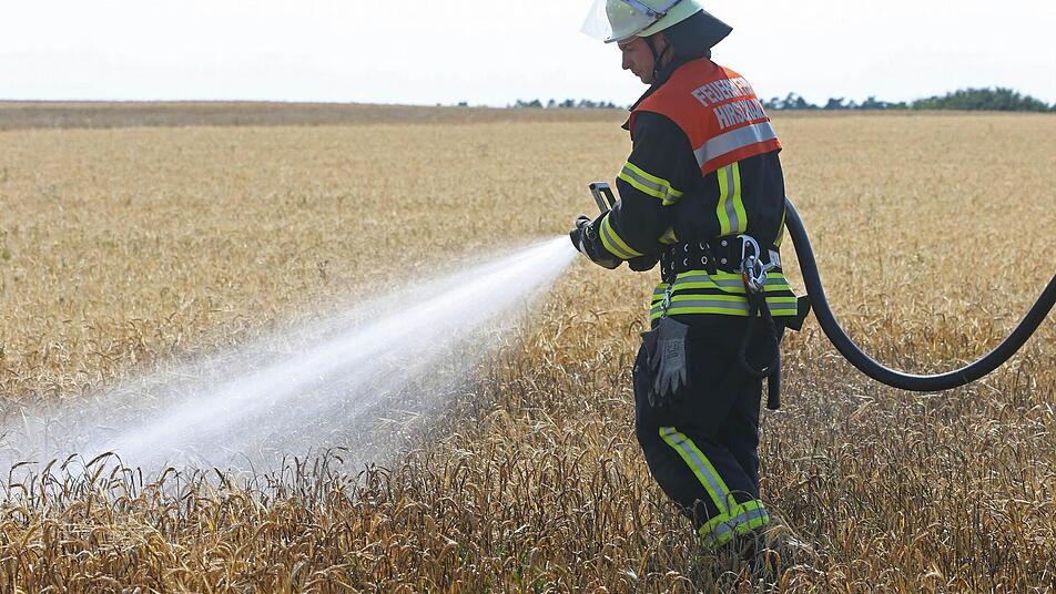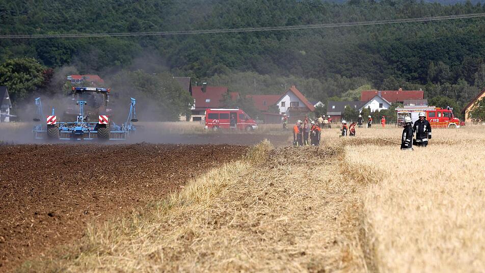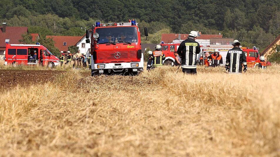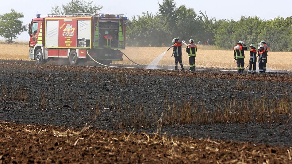 Auf einem Feld neben der Kreisstraße westlich von Geisfeld Der Besitzer war zu diesem Zeitpunkt gerade dabei gewesen dieses mit seinem Mähdrescher abzuernten, als ihn ein zufällig vorbeikommender Autofahrer auf den Brand aufmerksam machte. Trotz sofort eingeleiteter Löschversuche mittels Feuerlöscher konnte der Landwirt ein Abbrennen der Feldfläche nicht mehr verhindern.