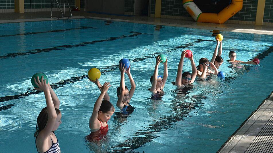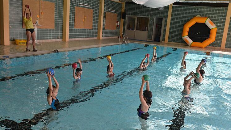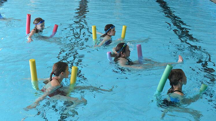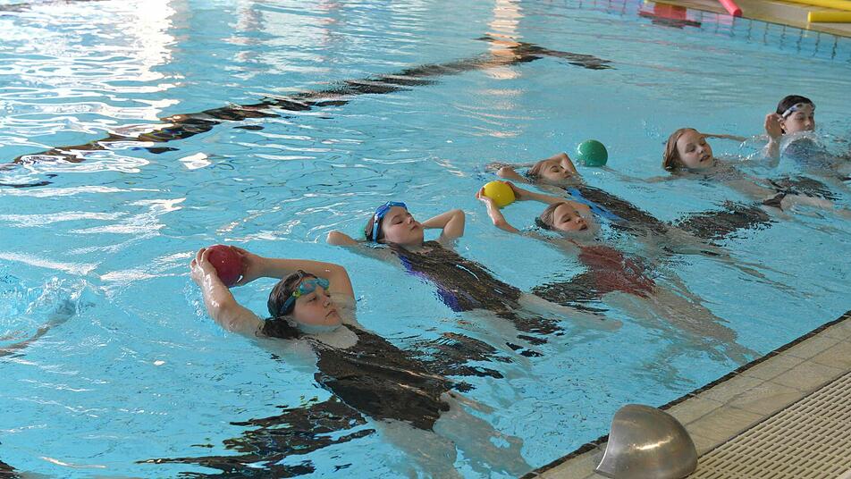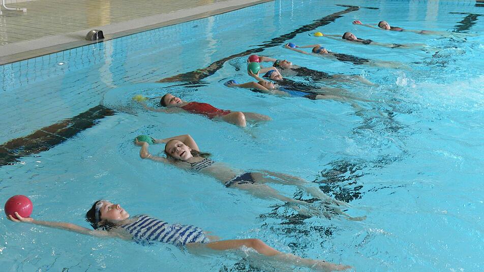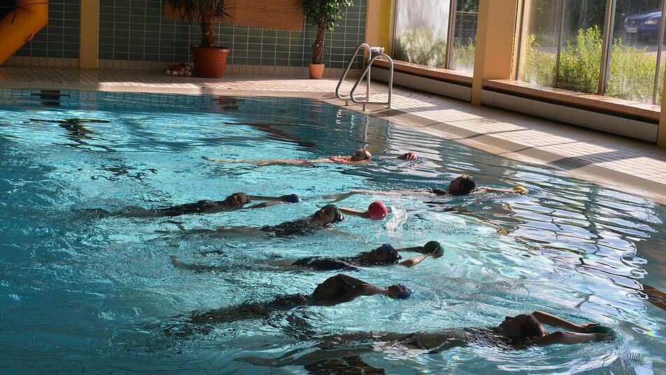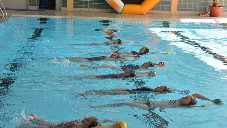 Was genau Synchronschwimmen ist, wusste die neunjährige Sophie Brückner aus Mittelrüsselbach auch nicht. "Aber jetzt weiß ich es und es macht Spaß", strahlt Sophie, die mit den anderen Girls bereits im Wasser ist, leicht auf- und abhüpft, das Wasser fühlt. Aufmerksam beobachten die Mädchen ihre Kursleiterin am Beckenrand.