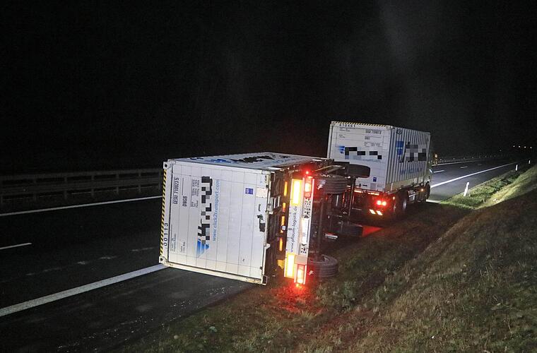 Auf der A73 bei Bamberg ist am Mittwochmorgen ein Gliederzug umgestürzt. Der Lkw-Fahrer ist aus Unachtsamkeit ins rechte Seitenbankett geraten.