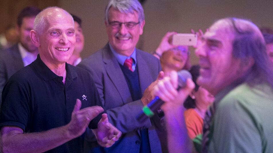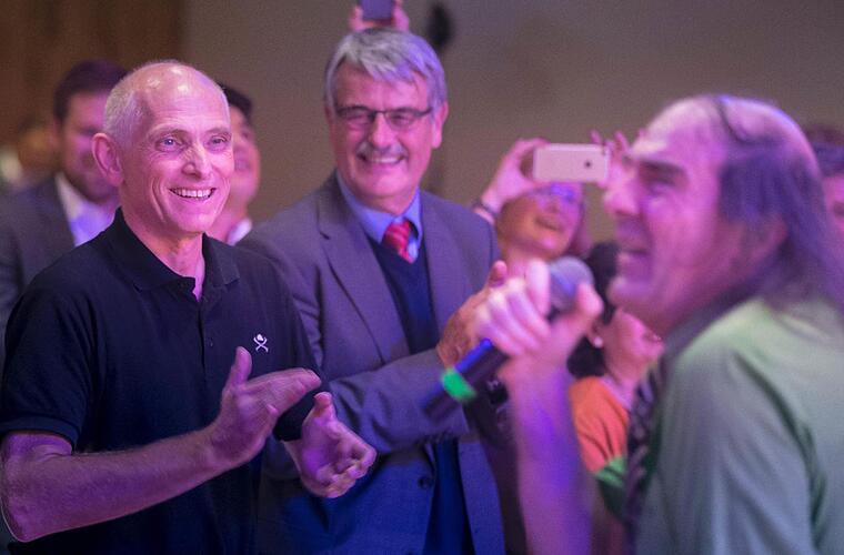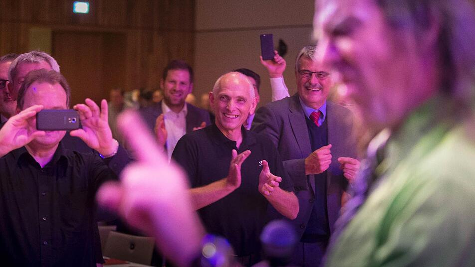 Die Gesellschaft aus Politik, Wirtschaft und vor allem Sport stand Kopf, besser gesagt auf den Stühlen. Spätestens bei Marianne Rosenbergs "Er gehört zu mir" kannte die Begeisterung im schmucken Hallstadter Saal keine Grenzen mehr. Die Familie und Freunde des "Sechzigers" klatschten, sangen, fotografierten, tanzten und schunkelten.