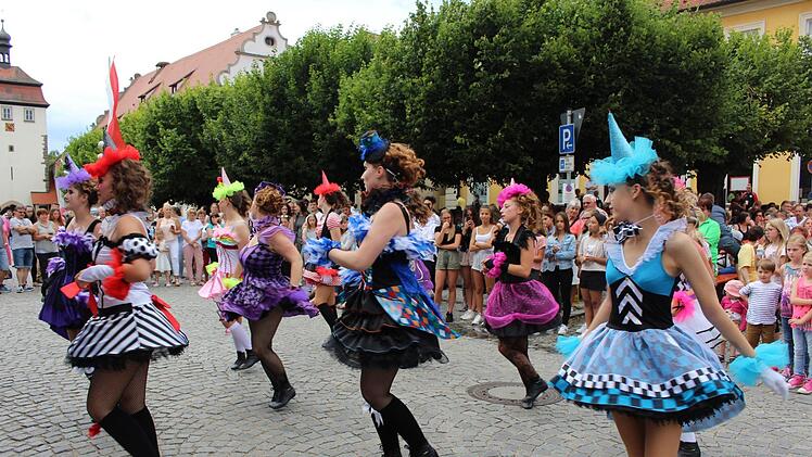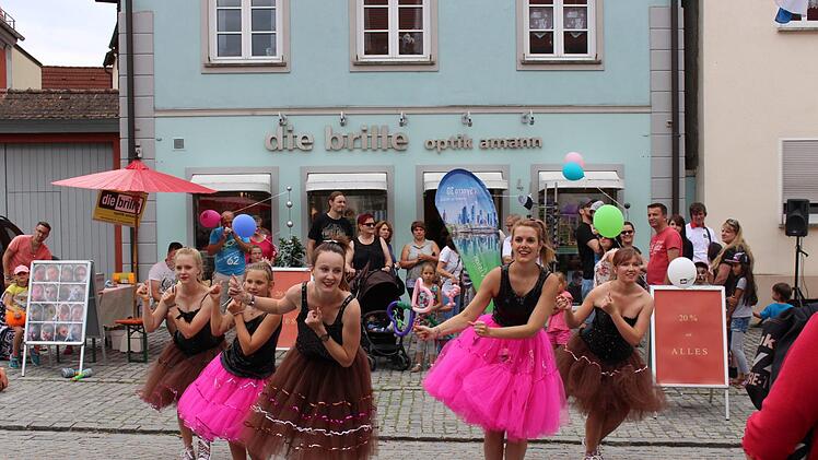 Die Werbegemeinschaft hatte auch allerhand aufgeboten: Die Geschäfte hatten geöffnet, an den Ständen gab es Kleidung, Haushaltswaren, Spielsachen und noch vieles mehr. Ab 15 Uhr präsentierten sich Tanzgruppen aus Aschbach und Schlüsselfeld dem Publikum. Insbesondere die "Grazien" des TSV Aschbach (Leitung Nadja Fuchs) hatten es in ihren fantasievollen und farbenprächtigen Kostümen den Zuschauern angetan.
