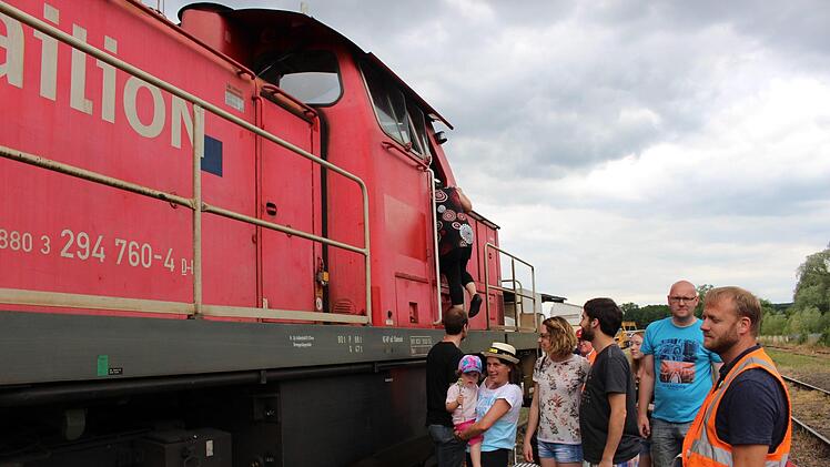 Gleich nebenan feierte die Interessengemeinschaft Steigerwaldbahn ihr Bahnhofsfest. Besucher konnten von Bamberg aus sogar mit dem Triebwagen anreisen. Am Nachmittag gab es eine Pendelfahrt nach Steppach und zurück. Höhepunkt für alle, die als Kind Lokführer werden wollten, war ein Besuch auf dem Führerstand einer Diesellok. Wie Lokführer Michael Scheller erläuterte, wird die Lok der Baureihe 294 noch heute eingesetzt, um kürzere Strecken zu bedienen. So auch auf der Strecke nach Schlüsselfeld, auf der täglich ein Schlüsselfelder Unternehmen beliefert wird.