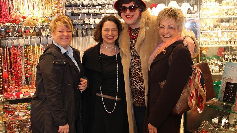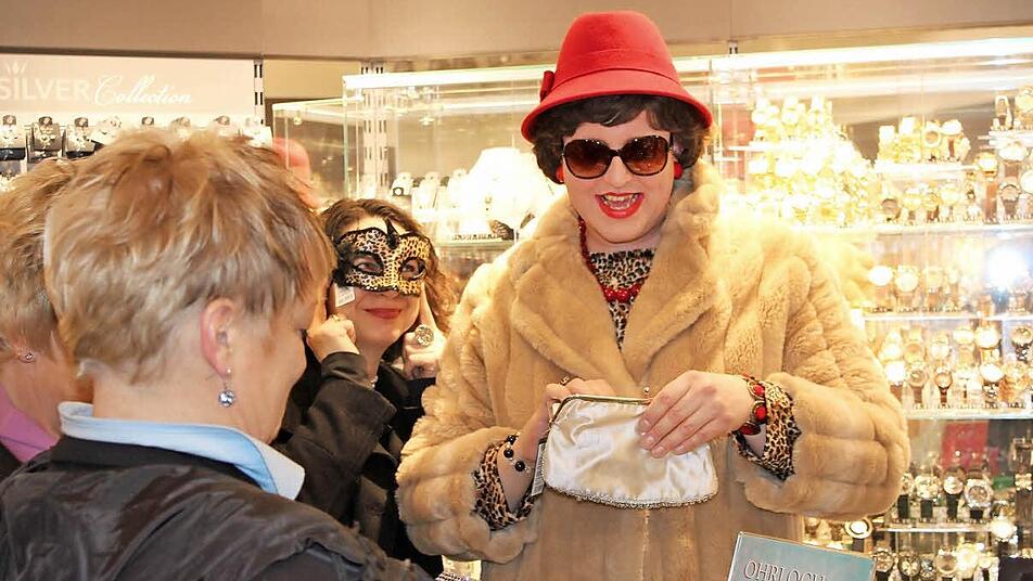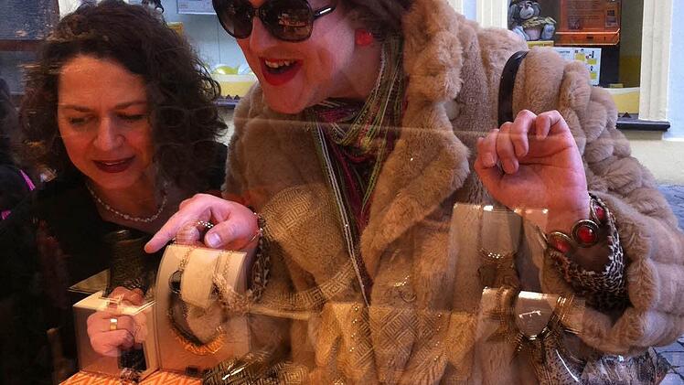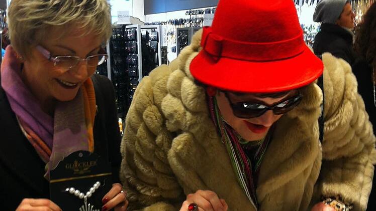 "Was für ein reizender Ring! Und dieses zauberhafte Armkettchen. Schau mal: Passt das nicht wunderbar zu meinem Pelz?" Als "Shopping Queen" ist Hanuta Gonzales nicht zu toppen, die gerade mit Ursula Gumbsch durch Bambergs Boutiquenszene streifte, um sich für die anstehende Premiere von "Shades Of Schmalz II" aufzustylen: Roter Hut, im gleichen Ton wie Schmuck und Lippenstift, ein Leoparden-Shirt, ideal zur Handtasche, die sich die Diva leistete. Ja, da erblasst jede modisch unterbelichtete Normalfrau und starrt die Stilikone an, die's als Fränkin eben locker mit Lady Gaga oder Lorielle London aufnehmen kann. Dementsprechend das Aufsehen, das Hanuta beim lässigen Bummel durch die Fußgängerzone erregte. Aber störte es die Träller-Transe je, im Rampenlicht zu stehen?
