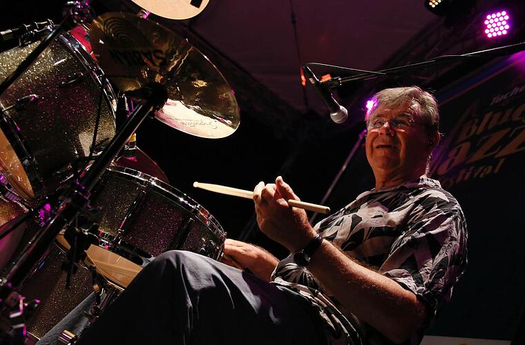 Eddie Hardin (64) erinnert sich. Und dann Pete York. Vor einigen Tagen ist der Mann 71 geworden. Unglaublich, wie er sein nicht allzu großes Drumset traktiert. Einem York-Solo könnte man stundenlang zuhören. Ökonomisch, mit einer richtigen Dramaturgie, keine stumpfe Kraftmeierei wie bei so vielen Rock-Drummern. Man merkt, wie eingehend er Jazz-Schlagzeuger wie Buddy Rich oder Gene Krupa studiert hat. Dazu kann er auch noch charmant-witzig moderieren, mit echt britischem Understatement. Das sollten einige in Bamberg lernen!