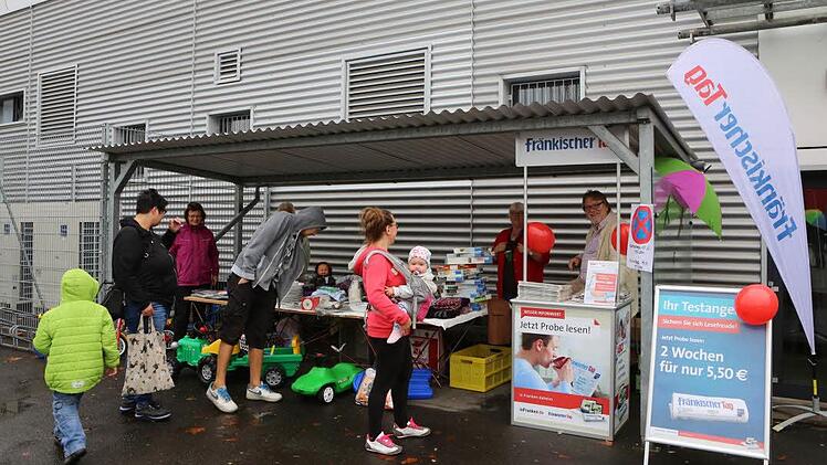 Der Spätaufsteher-Flohmarkt der Mediengruppe Oberfranken litt unter dem trüben Wetter. Die wenigen Verkäufer waren dennoch zufrieden.