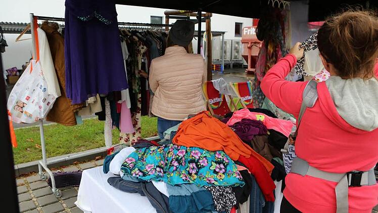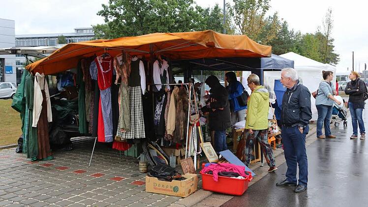 "Ohne Pavillon wären wir nicht hier", bekundeten Standnachbarn aus dem Landkreis Bamberg, die Überflüssiges aus Keller und Kleiderschrank an die Leute bringen wollten. Das gelang auch zumindest kurz nach dem Marktbeginn um zehn Uhr, ebbte aber wieder ab.