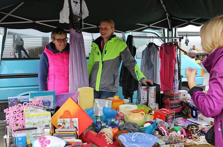 Die beiden Freundinnen Stefanie Schrüfer und Julia Distler aus der Fränkischen Schweiz trotzten mit charmantem Lächeln und sonniger Laune dem grauen Himmel. Die jungen Frauen präsentierten ein Sammelsurium an Büchern, Klamotten, Geschirr und Dekoteilen, die eigentlich niemand braucht und dennoch einige Abnehmer fanden.