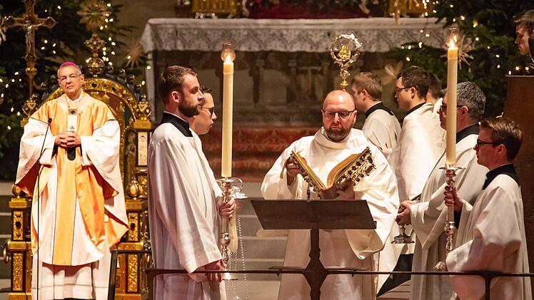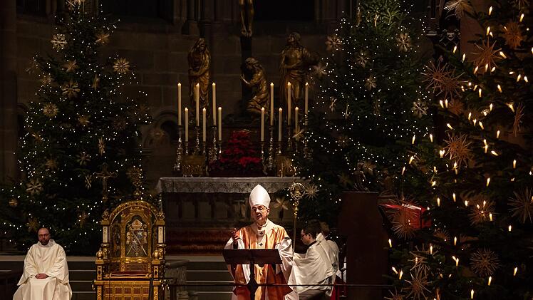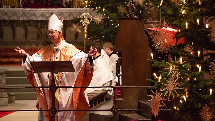 Auch Erzbischof Ludwig Schick ging im Pontifikalamt am ersten Weihnachtsfeiertag auf Emotionen, auf sinnenreiches Erleben des Hochfestes der Geburt des Herrn ein. Diese gestenreiche Predigt im Dom berührte tatsächlich die Sinne, stand dabei in einem leichten Kontrast zu seinen eher geistverwurzelten Worten in der nächtlichen Christmette.