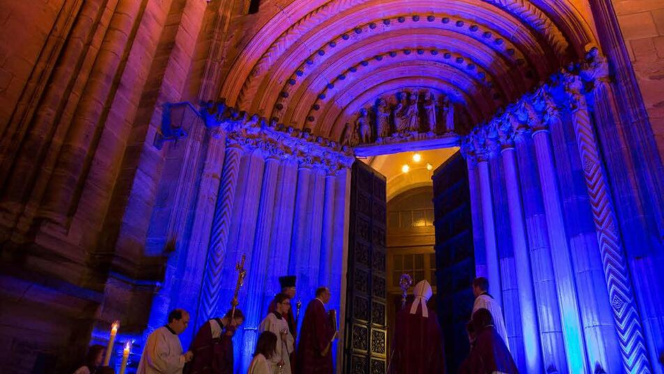 Bevor der Mesner von innen die Pforte öffnete, sprach Erzbischof Schick: "Das ist das Tor zum Herrn, durch dieses Tor tretet ein, um Barmherzigkeit und Vergebung zu erlangen." Als dann die versammelte Schar durch die weit offen stehende Marienpforte in den Dom einzog, empfing sie der Chor mit Domkapellmeister Werner Pees: "Machet die Tore weit!" ertönte es sinnig. Die stimmig gestaltete Vesper mit ihren Momenten der Stille, mit Psalmen, Magnificat und Fürbitten berührte.
