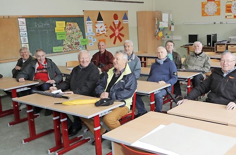 Rektor Norbert Bocksch lässt es sich nicht nehmen, die älteren Herren samt einigen Ehefrauen willkommen zu heißen und durch die Schule zu führen. Das Gebäude wird derzeit teilsaniert - etwa die Toilettenanlagen erneuert -, was aber den Unterrichtsablauf nicht beeinträchtigt. Das versichert jedenfalls der Rektor, der sich über seine besonderen Gäste aus früherer Zeit sichtlich freut.