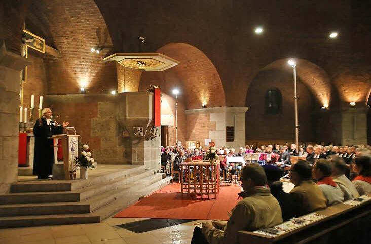 Dekan Lechner verwies auf die lebendige Ökumene am hiesigen Ort und begrüßte stellvertretend den katholischen Diakon Ulrich Ortner, der gemeinsam mit den Pfarrern der evangelischen Gemeinden Bambergs in die Erlöserkirche eingezogen war. "Ich bin mir sicher, dass viele Katholiken hier dabei sind!", schaute ein strahlender Dekan in die Bankreihen. Aber: "Gott sehe uns jetzt alle an mit seinem liebevollen Blick!", lenkte Lechner von irdischen Augenmerken in die himmlische Richtung.