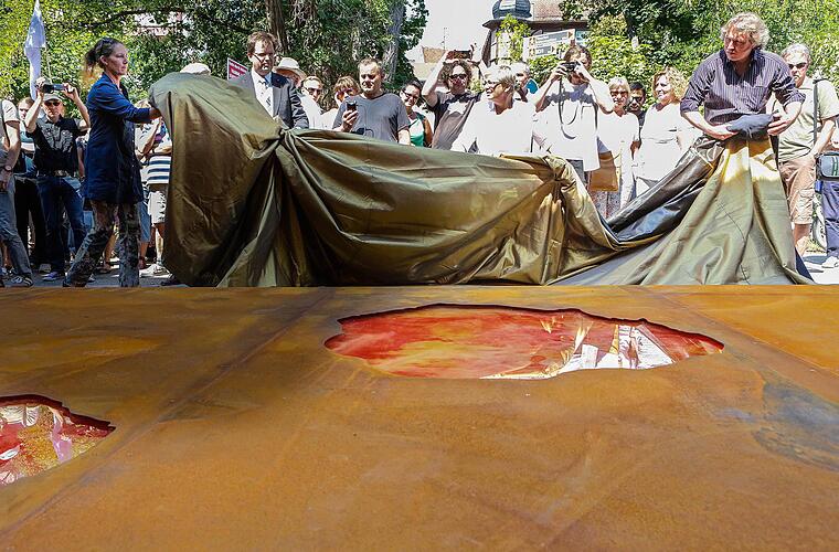Auch das Künstlerpaar Sandmann und Giessler sprach von einem "dunklen Kapitel, in das dieses Brandmal etwas Heilung, vielleicht Vergebung bringen kann". Es sei ein "abstrahiertes Bild, das Assoziationen zulässt" - von der einzelnen offenen Wunde bis hin zu einer Warnung vor der Verharmlosung bestimmter Gesinnungen, die Ausgrenzung und Fremdenhass befördern. "Das Brandmal muss nicht allen gefallen", räumten die Künstler ein. Doch es solle "zum lebendigen Austausch beitragen".