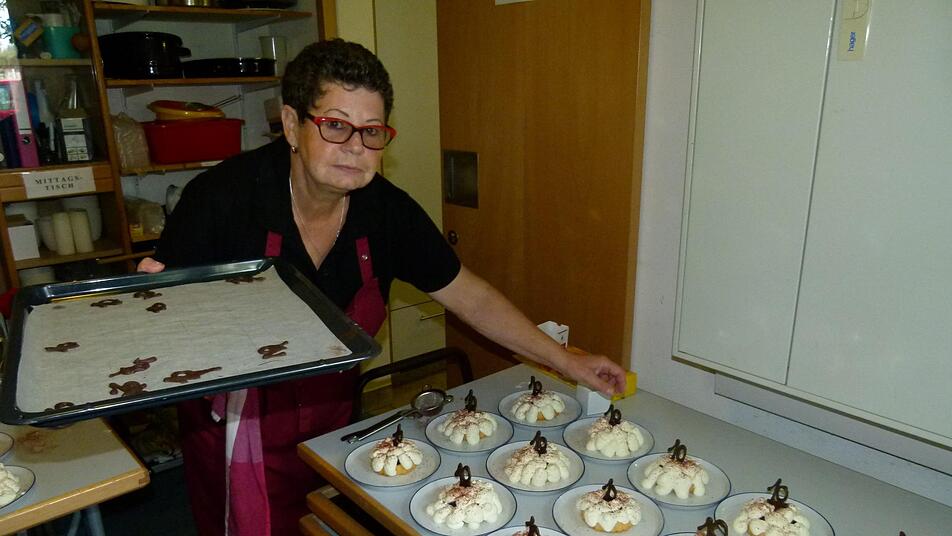 Die ehrenamtlichen Küchenfeen haben sich etwas Besonderes einfallen lassen, um ihre Gäste zum zehnjährigen Jubiläum des Mittagstisches so richtig zu verwöhnen. Es gibt einen Linsensalat auf Rucola mit Garnelenspieß, eine Kürbissuppe, dann gefüllte Lendchen mit Spätzle und Schwarzwälder Kirsch-Torte. Aromatischer Duft durchzieht den Saal. Allmählich füllt sich der Raum mit den festlich gedeckten Tischen: herbstlicher Schmuck aus Maiskolben, Astern, Kerzen, Servietten.