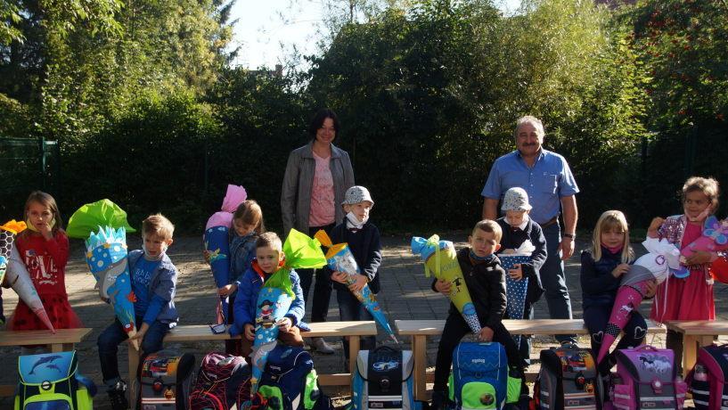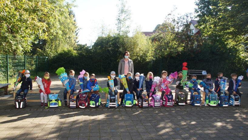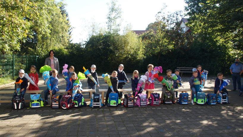Nur leicht getrübt wurde der Eintritt durch die coronabedingte Masken- und Abstandspflicht, die aber die Schulneulinge wie fast schon gewohnt wegsteckten, überwog doch die Freude und Neugier auf die Schule. Stolz trugen sie den Schulranzen auf dem Rücken und die meist noch schwerere gut gefüllte Schultüte in den Händen. Sie waren ja nun keine Kindergartenkinder mehr, sondern Schulkinder.