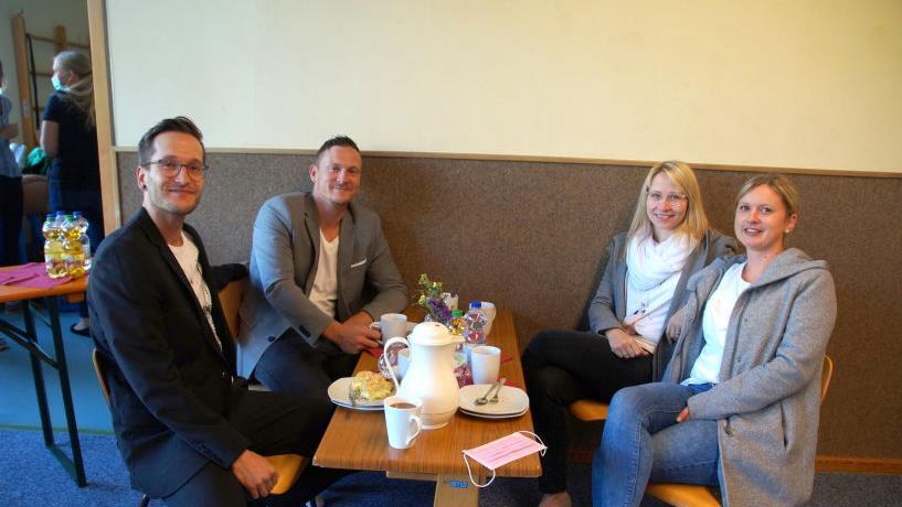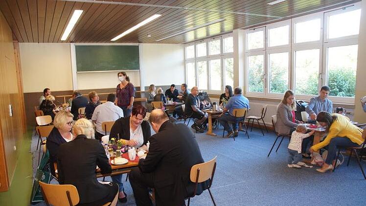 Die Eltern konnten sich die Zeit bis Schulschluss bei Kaffee und Kuchen in der Turnhalle vertreiben. Dies war von den letztjährigen Erstklasseltern unter der Regie von Frau Bezold organisiert worden. Dabei lernten sich einige Eltern auch erst kennen.