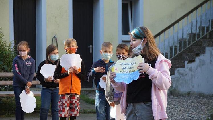 Viele gute Wünsche trugen die Schüler der kombinierten dritten und vierten Klasse mit ihrem Vertretungslehrer Frank Dörfler den Neuen vor. Ihr eigentlicher Lehrer Christoph Hoh war verhindert, da er ein eigenes Kind bei der Einschulung begleitete.