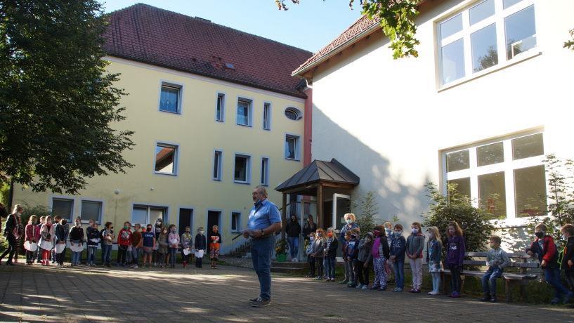 Auch Norbert Grasser (Bürgerblock), Königsfelds Bürgermeister und Vorsitzender des Schulverbands mit der Stadt Hollfeld, war zur Einschulungsfeier gekommen. Er sprach den Schülern, Eltern und Lehrern Mut im neuen Schuljahr trotz der Corona-Pandemie zu und wünschte einen guten Start.