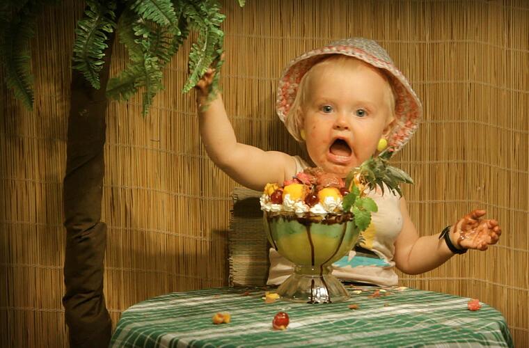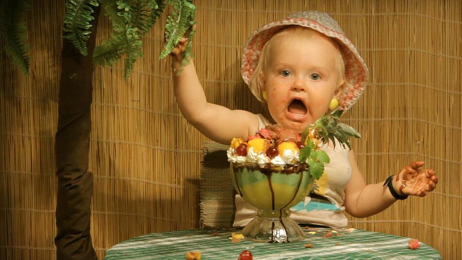 Aus Großbritannien kommt ein Werbespot für den atomar betriebenen Herd "Hälkke 9", der das "altmodische, zeitintensive Kochen mit seinen Unannehmlichkeiten wie Fettspritzern gänzlich überflüssig macht". Im Beitrag aus Österreich isst Familie Meiberger zu Abend. Was kein Filmthema wäre, würden die Protagonisten in "Tomatenköpfe" nicht die Schwerkraft besiegen und der Gravitation beim Nudelschmaus ein Schnippchen schlagen.