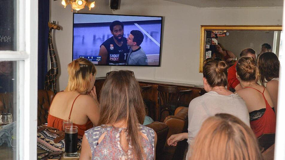 Mehr los sollte doch jetzt in der Sportsbar "Lewinsky's" sein - doch Fehlanzeige: "Wir machen eine Pause bis 7. 6.", steht am Eingang. Ein paar Meter weiter in der Oberen Sandstraße ist dann doch der 101:82-Sieg über Ulm zu sehen. Im "Stilbruch" flimmert die Partie über eine Leinwand und einen TV-Schirm. Unter den gut 40 Gästen, von denen sich bei Weitem nicht jeder für Basketball interessiert, hat sich auch der Maxplatz-Enttäuschte Christopher Belitz mit seinen Freunden niedergelassen. "Das ist mein erstes Spiel in diesem Jahr", erzählt der 29-Jährige.