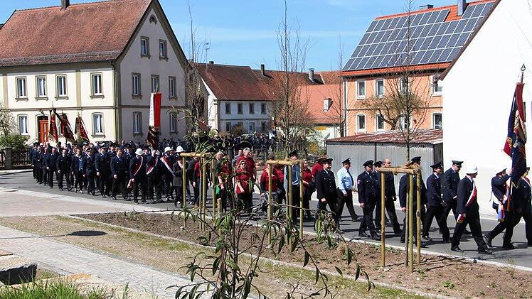 Den Abschluss der Dorferneuerungsmaßnahmen feierten die Mönchsambacher Bürger am Wochenende. Nicht nur sie - auch eine Schar von Feuerwehrmännern und -frauen mit ihren Fahnenabordnungen zeigten bei den Feierlichkeiten ihre Verbundenheit zu ihren Kameraden in Mönchsambach. Denn im Zuge der Maßnahmen wurde auch ein neues Feuerwehr- und Dorfgemeinschaftshaus seiner Bestimmung übergeben.