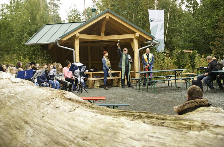 Forstamtdirektor Hans Schmid als Vertreter des Amtes für Ernährung, Landwirtschaft und Forsten, das den 30 000 Euro teuren Pavillon finanzierte, dankte Paul Zweier vom Amt für Ländliche Entwicklung für die Unterstützung des Projektes. Pavillon und Lehrweg passen richtig in die Zeit und bilden eine neue Phase. "Der Schulwald" kostete nach Auskunft von Keilholz insgesamt rund 70.000 Euro.